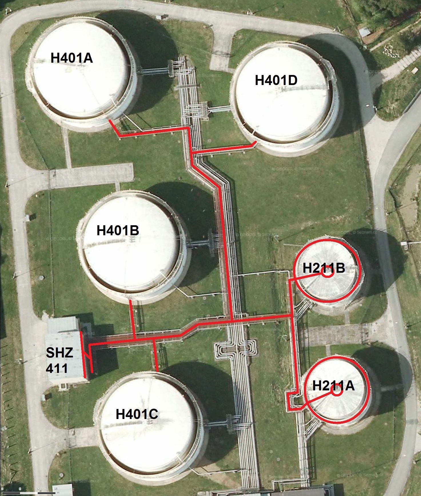 Rekonstrukce potrubí SCHZ a SHZ na skladech Třemošná, Šlapanov, Sedlnice